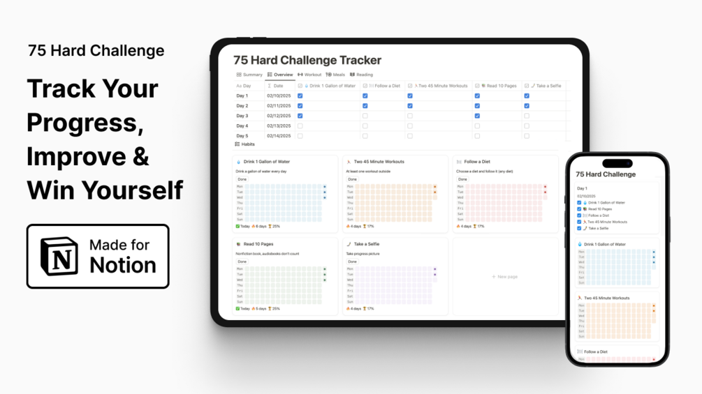 75 Hard Challenge Tracker Notion Template